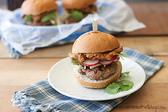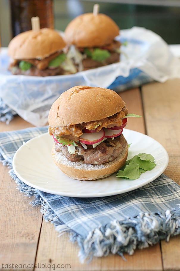 These little sliders are so packed with flavor. I’m a huge fan of peanut butter based sauces, and I couldn’t get this recipe out of my head after I first saw it. Knowing that my husband isn’t a big fan of peanut butter in savory dishes, I had to wait until a night when I knew he wouldn’t be eating dinner, but it was so worth the wait. The burgers are perfectly spiced, then you have lots of crunch and a bit of heat from the toppings, and then the sauce – that is a might fine way to top a burger.