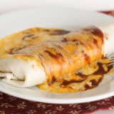 A great meatless option, these Chili Potato Burritos are filled with mashed potatoes and spices and covered in enchilada sauce.